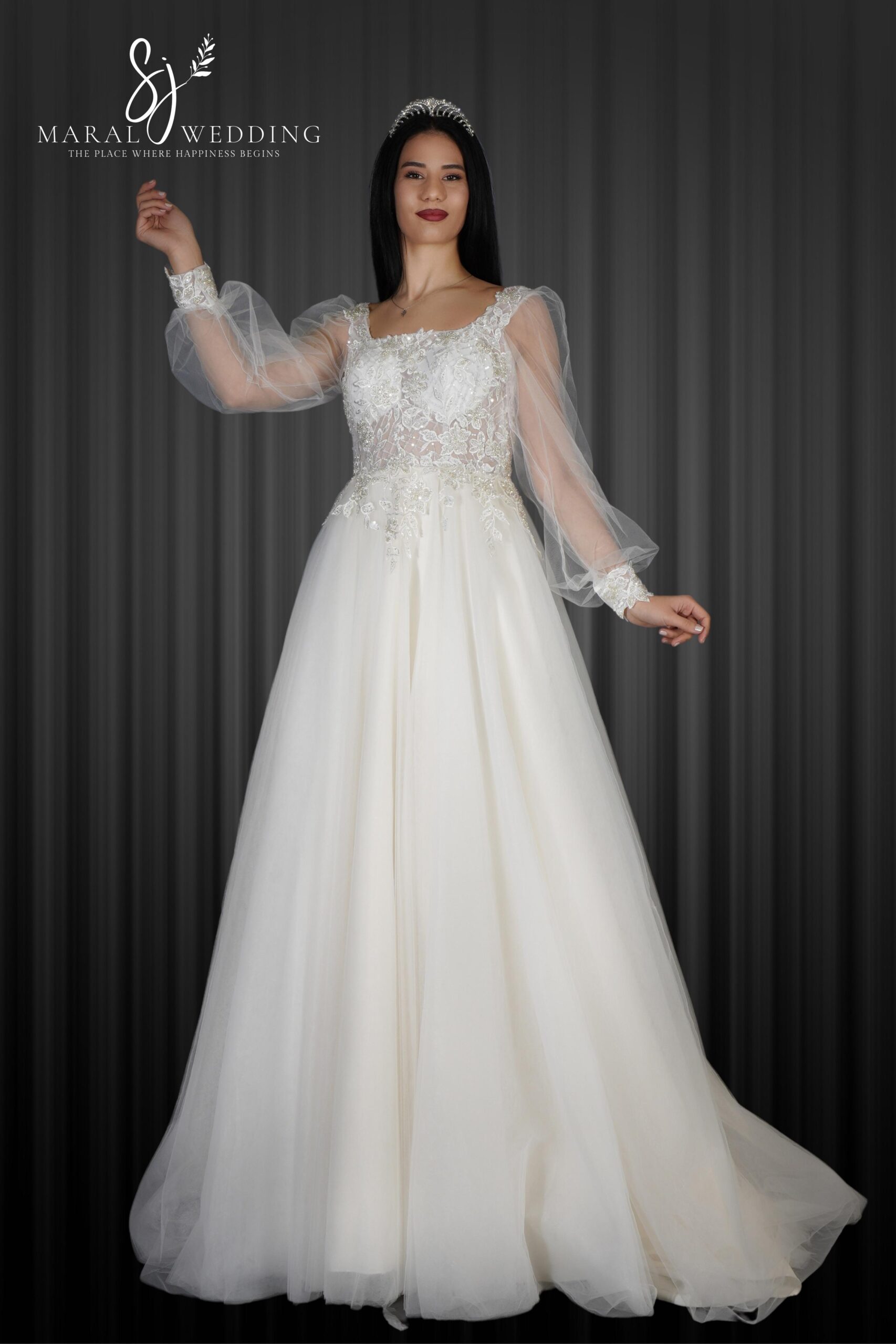 Maral Wedding moda ekibi, tüm tasarımlarımızı size özel ölçülerde üretebilmektedir. Size özel teklif almak için bizimle iletişime geçmeniz yeterli. Ürün kataloğumuz sürekli yenilendiğinden, hayalinizdeki gelinliği bize tarif ederek eşsiz tasarımlara sahip olabilirsiniz.
